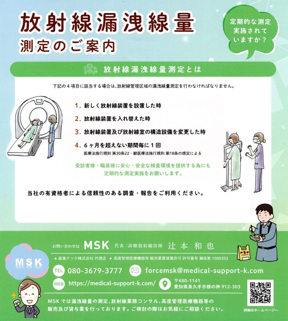 医療施設等のX線室からの放射線量を放射線測定器(サーベイメータ)を用いて測定します。